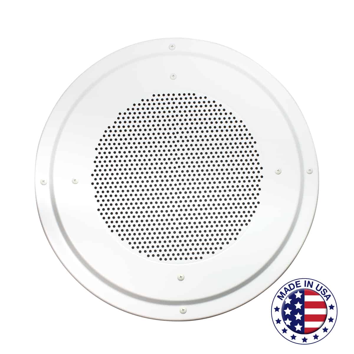 Lowell RS12-AW Grille for 12in Speaker, Aluminum, Screw Mount, 16.625inDia, White, ORDER IN MULTIPLES OF STD CTN (QTY IN COLUMN F). Made in USA TAA-compliant and BAA-compliant